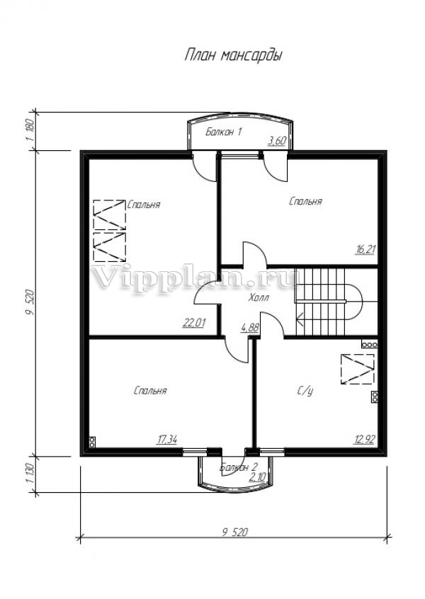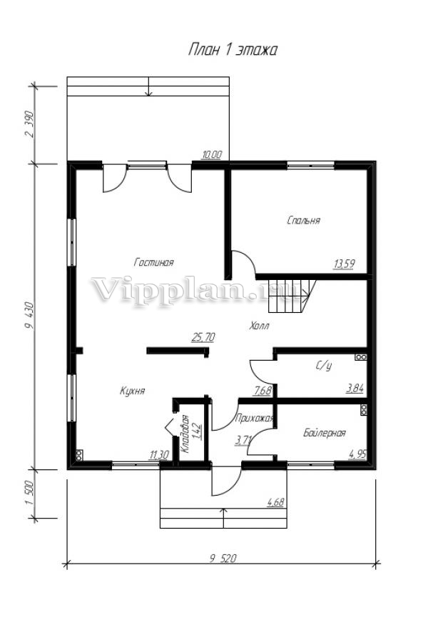 | Размеры дома: | 9.43м×9.52м |
