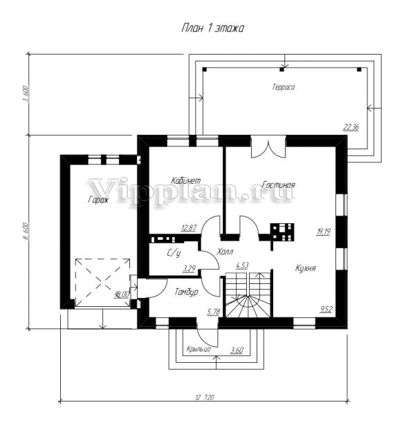 | Размеры дома: | 12.72м×8.6м |